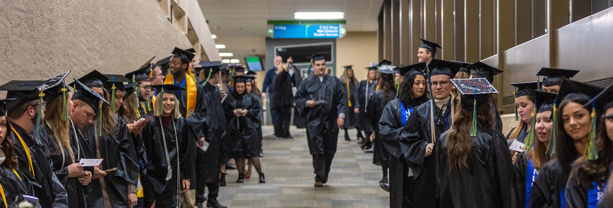 On the day of the ceremony, graduate candidates should arrive by 5pm to check in and get lined up for the processional.