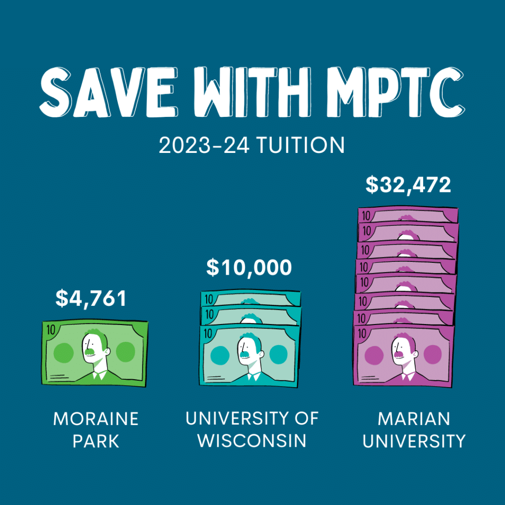 • Gen Ed: Students can save 4-year tuition by starting at Moraine Park and later seamlessly transferring to a 4-year university with junior status.
