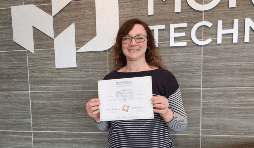Outside of taking classes and volunteering, Guell fills her time with family by gardening, taking road trips, camping, crafting and spending time outdoors. Recently, Guell received Moraine Park’s Gold Community Impact Award for completing 100-199 hours of service-learning or volunteering.