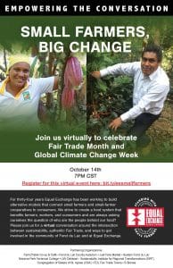 Join us virtually to celebrate Fair Trade Month and Global Climate Change Week.