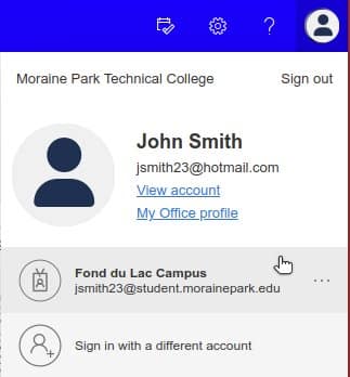 - Select your MPTC student account. If it does not show up in the list, click “Sign in with a different account” and enter your student email and password.